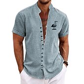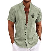 More information about Men's Flamingo Tropical Shirt Summer Hawaiian Shirt Aloha Shirt Short Sleeve Shirt Stand Collar Fashion Streetwear Designer Outdoor Vacation Street Blue Green Khaki S M L