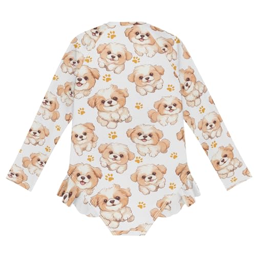 Puppy Footprints Girls Long Sleeve Swimsuit Rash Guard One Piece Bathing Suits Zipper 3-12T 3