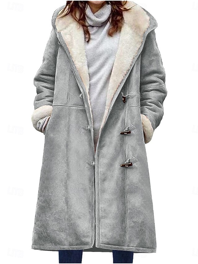 More information about Women's Winter Coat Teddy Coat Outdoor Street Daily Wear Fall Winter Long Coat Regular Fit Thermal Warm Breathable Stylish Casual Jacket Long Sleeve Plain with Pockets Wine Khaki Gray