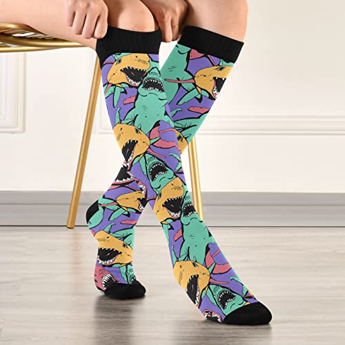 Wusikd Angry Shark Compression Socks for Women and Men Circulation Colorful Long Socks for Athletic Running 1 5