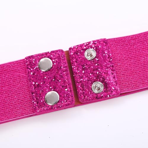 Jelory Womens Sparkle Glitter Rhinestone Faux Leather Belts Wide Elastic Waist Party Stretch Dress Belt 6