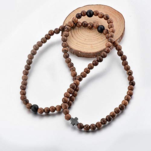 HOT ! Christian Prayer Beads Rope Bracelet | Wooden Beads + Hematite Cross | Women Men Children | Great Gift for any Occasion!