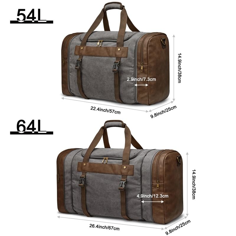 More information about 65L Canvas Duffle Bag Travel Overnight Carry on Duffel with Shoes Compartment for Men Women,Gray-As shown