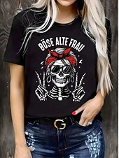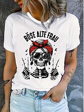 More information about Halloween Women's T Shirt Skulls Cotton Shirt Graphic Flag Vintage Stylish Classic Short Sleeve Crew Neck Regular Tops Daily Print Black White Summer