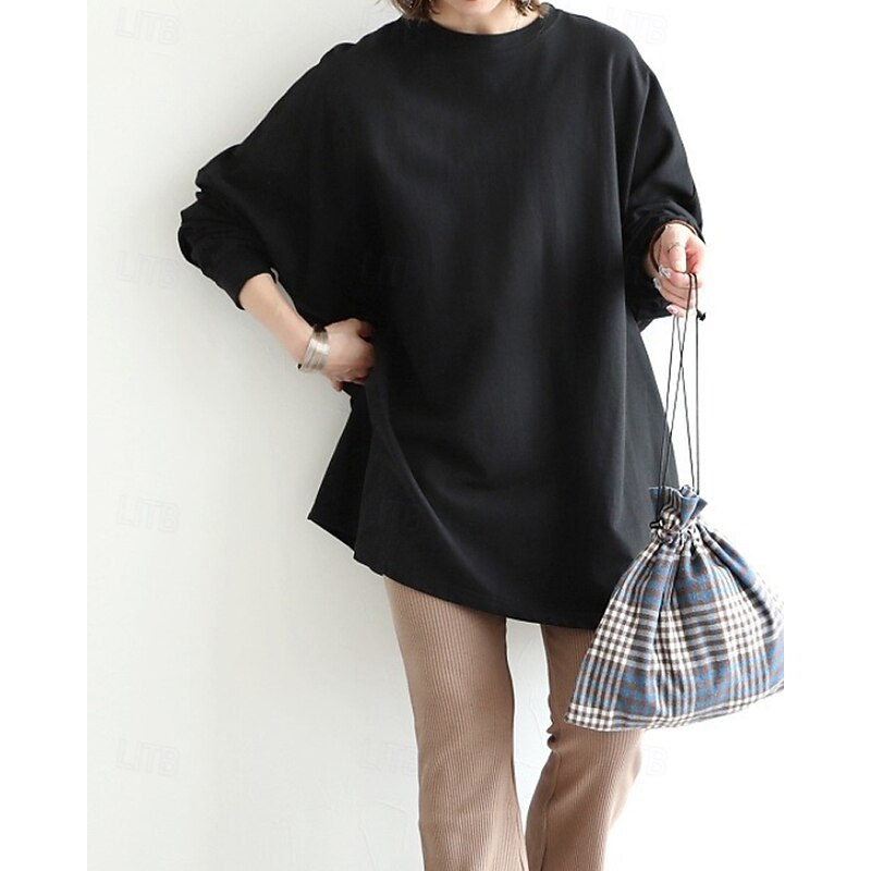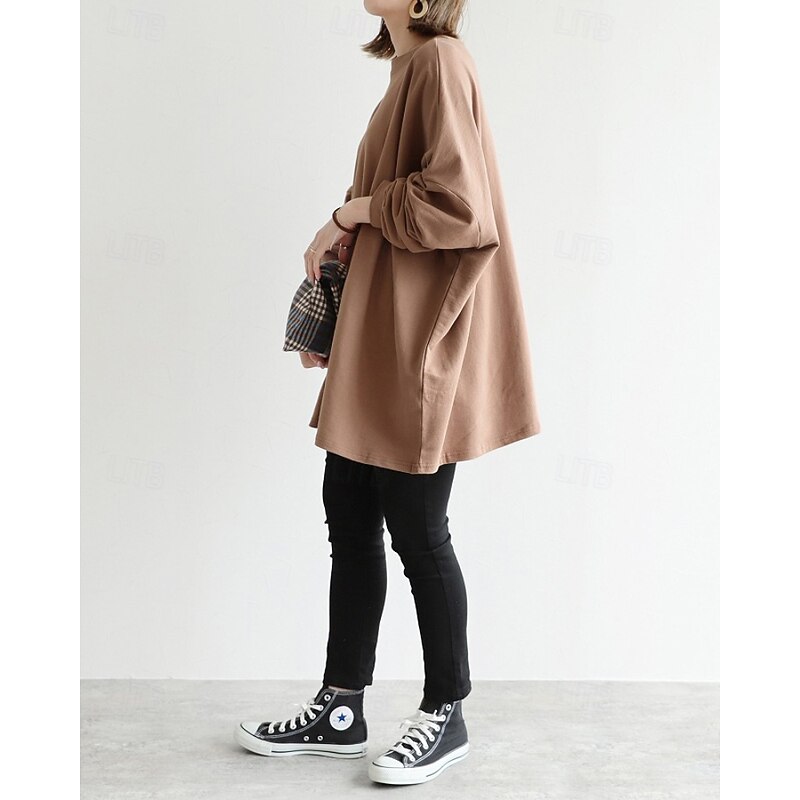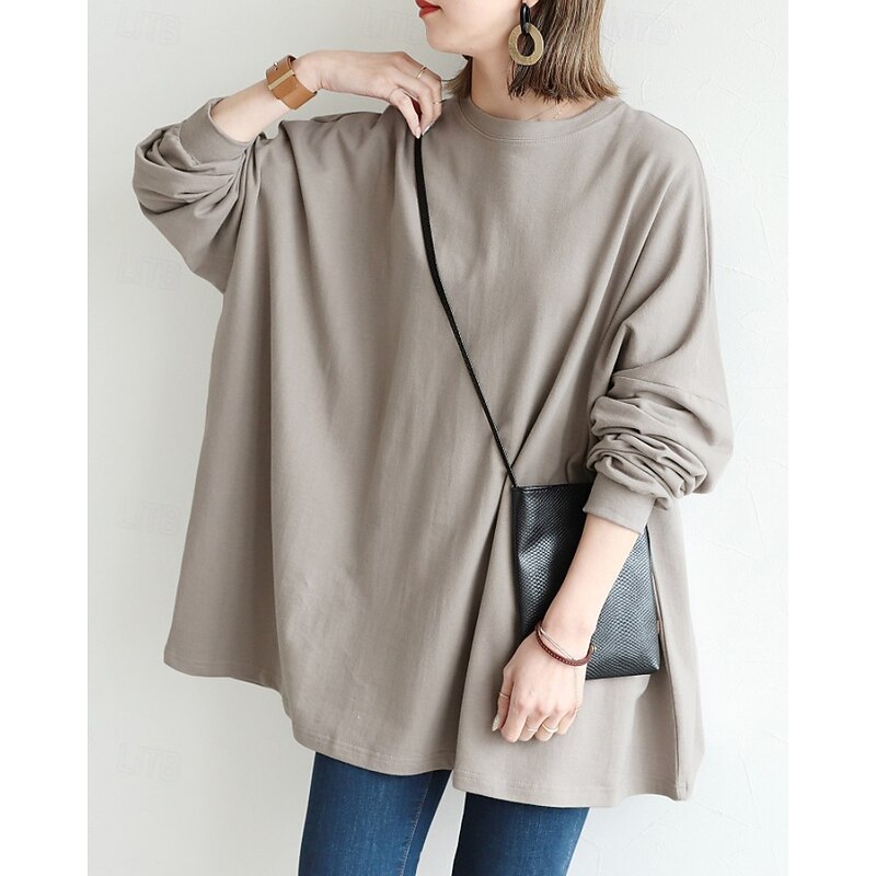 More information about Women's Pullover Sweatshirt Sweatshirts Plain Basic Casual Long Sleeve Crew Neck Regular Tops Street Going out Black Brown Beige Gray Fall