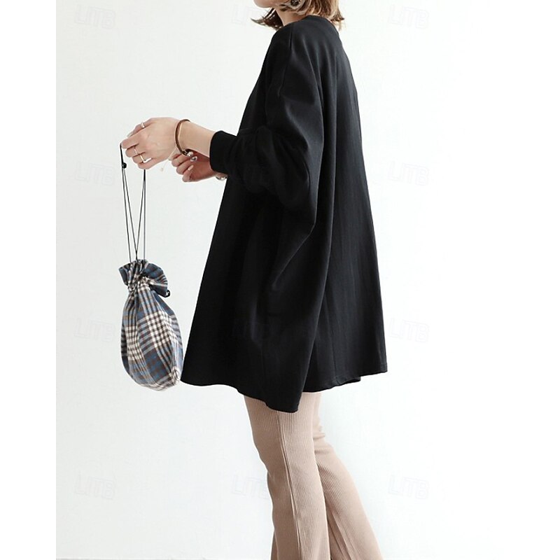 Women's Pullover Sweatshirt Sweatshirts Plain Basic Casual Long Sleeve Crew Neck Regular Tops Street Going out Black Brown Beige Gray Fall 24