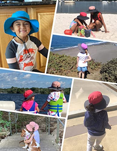 • UPF 50+ Sun Protection: This children's beach hat provides UPF 50+ sun protection and excellent UV protection function, effectively blocks harmful UVA and UVB rays. 2.7" wide brim will protect your delicate neck, ears and face from sun burn. The child can enjoy the outdoors happily in the hot summer activity.