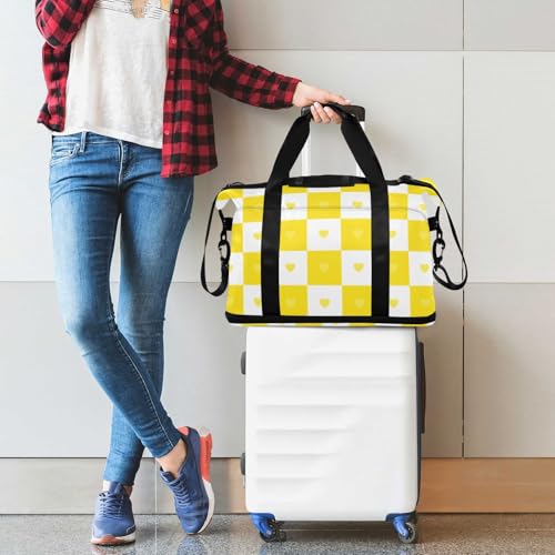 Buffalo Plaid Check Gold White Heart Gym Tote Bag Sport Training Bag with Adjustable Strap for Gym Multifunctional 7