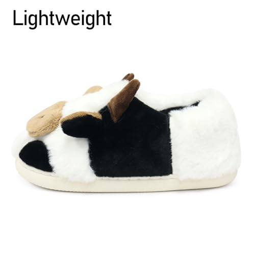 LIONPARK Women Cute Animal Cow Slippers - Cartoon Indoor Outdoor Man Cotton House Fuzzy Comfortable Slides 5