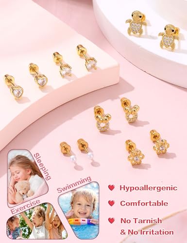 • Hypoallergenic Earrings For Girls: These cute screwback earrings are made of 316L stainless steel and AAAAA+ CZ, lead and nickel free, not easy to bend, polished well and electroplated well, and never be fading and rust, these studs have a smooth surface, are comfortable to wear, suitable for the sensitive skin