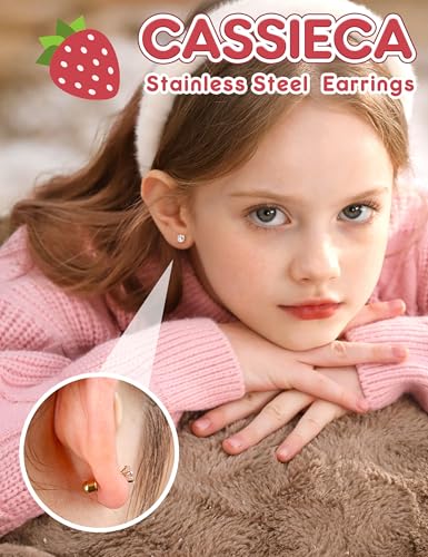 CASSIECA Hypoallergenic Earrings for Girls Women Stainless Steel CZ Heart Screw Back Stud Earrings for Kids Jewelry Gift 20G 5