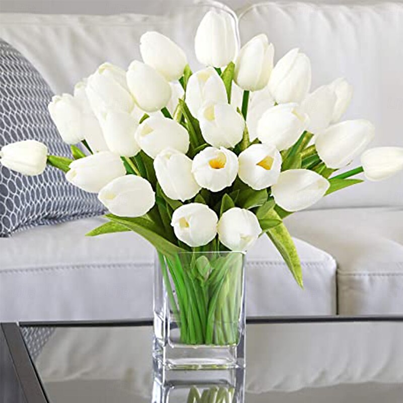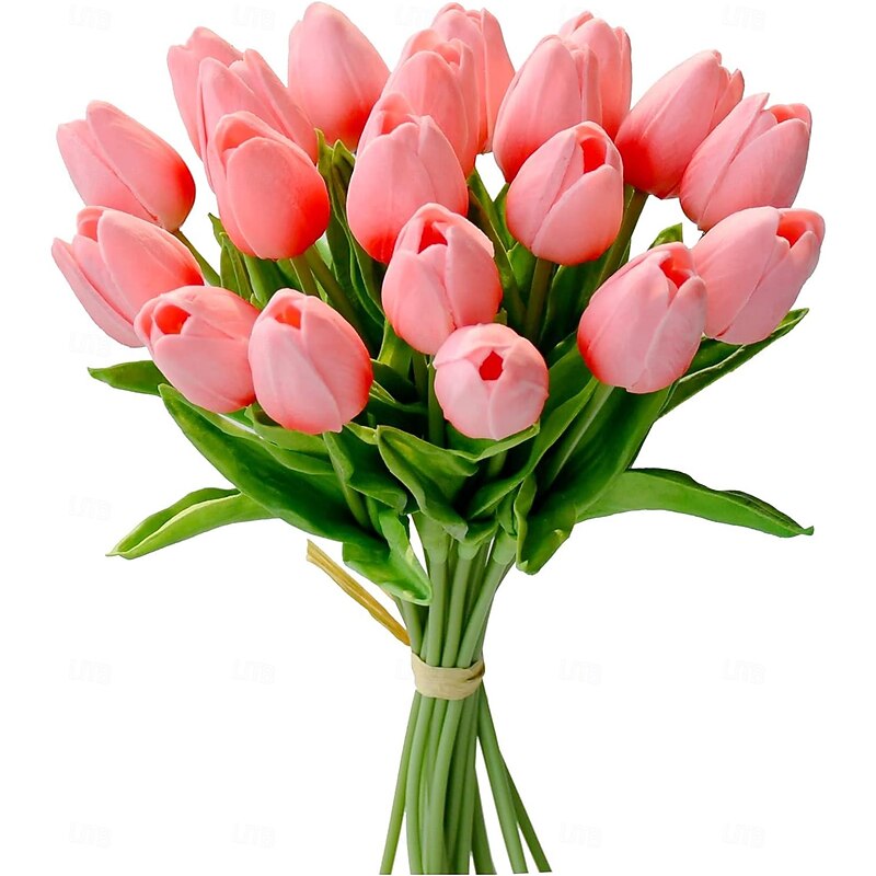 PU Tulip Artificial Flower, Realistic Simulation Tulip for Home Decoration, Wedding Fake Flower, Soft Touch Feel, Elegant Faux Tulip Arrangement 20