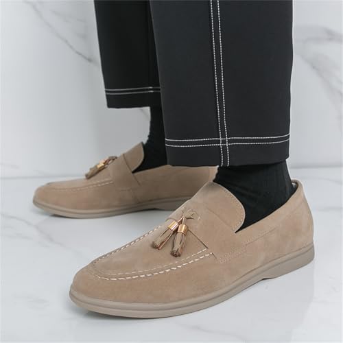 HOT ! Men's Suede Leather Slip On Penny Dress Loafers Shoes with Tassels Lightweight Retro Casual Flats Tuxedo Shoes for Prom Wedding Office Work