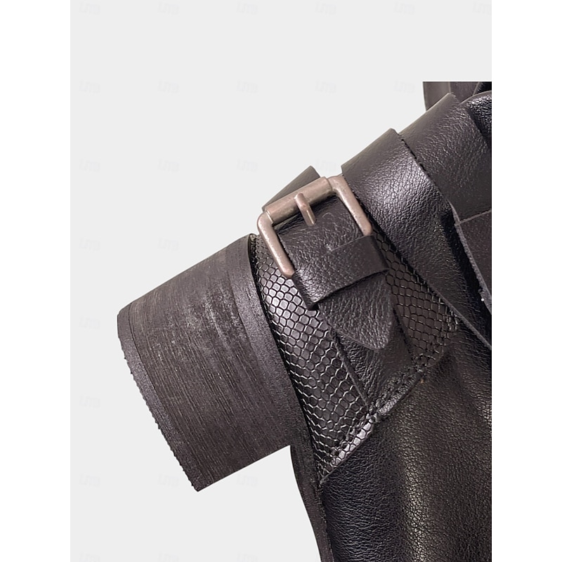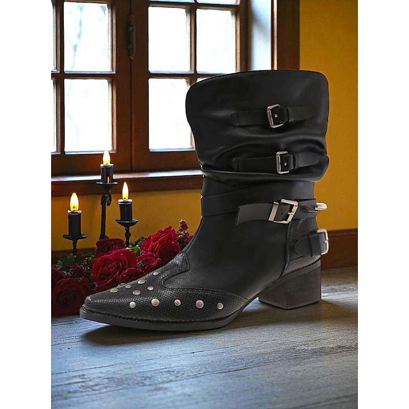 Highlights - Stylish PU upper material - Luxurious synthetic leather lining - Elegant buckle embellishment - Comfortable chunky heel design - Chic square toe shape - Durable rubber outsole
