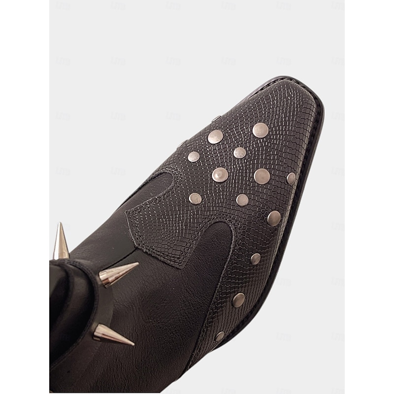 Women's Black Punk Gothic Ankle Boots with Bat and Cross Details - Spiked and Studded Design, 1980s Alternative Fashion, Ideal for Nightlife Events, Halloween Parties, and Retro Style Enthusiasts 11