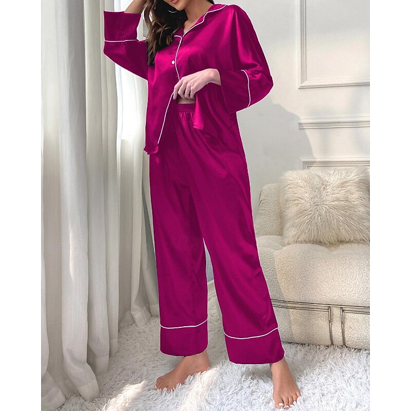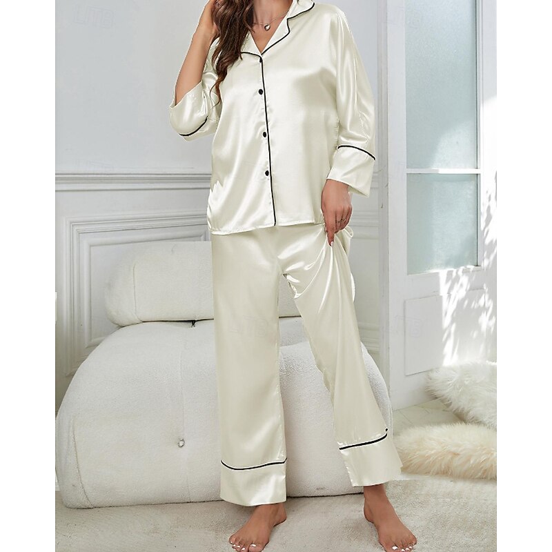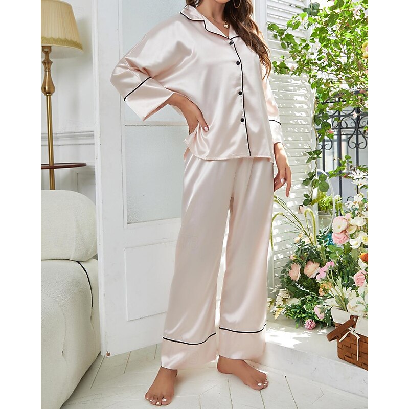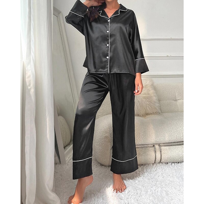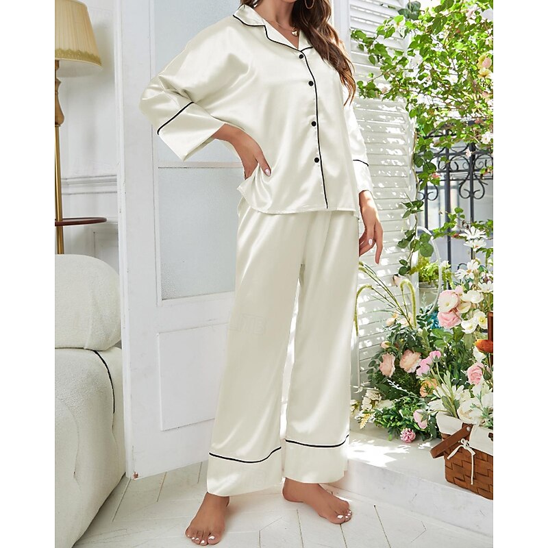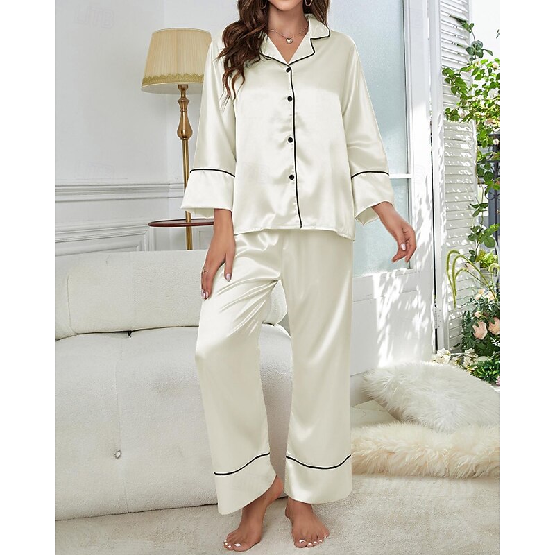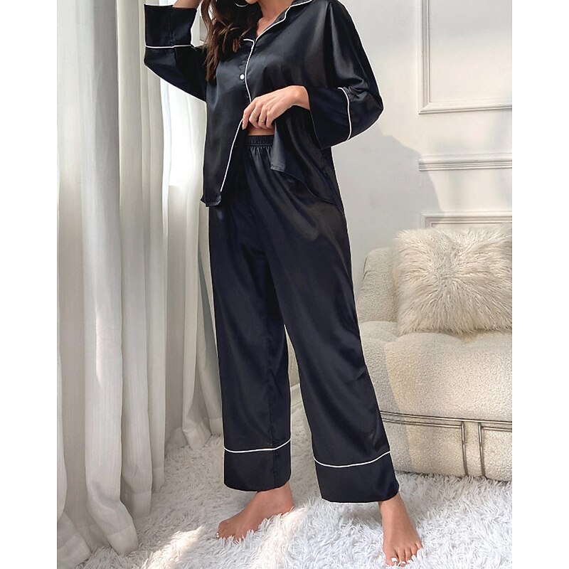 $31.99 - Women's Loungewear Pajama Set Casual Pure Color Elastic Waist Buttons Shirt Pant Vacation Home Bed Long Sleeve Lapel Black White Wine Navy Blue Beige Fall Winter Regular Fit 2025. Shop for cheap Women's Sleepwear online? Buy at lightinthebox.com on sale today!
