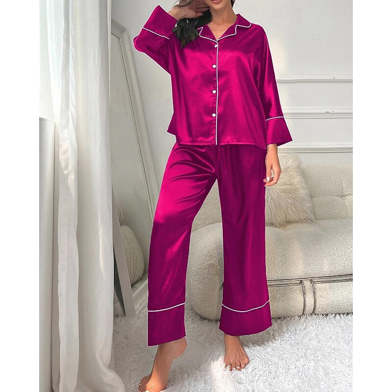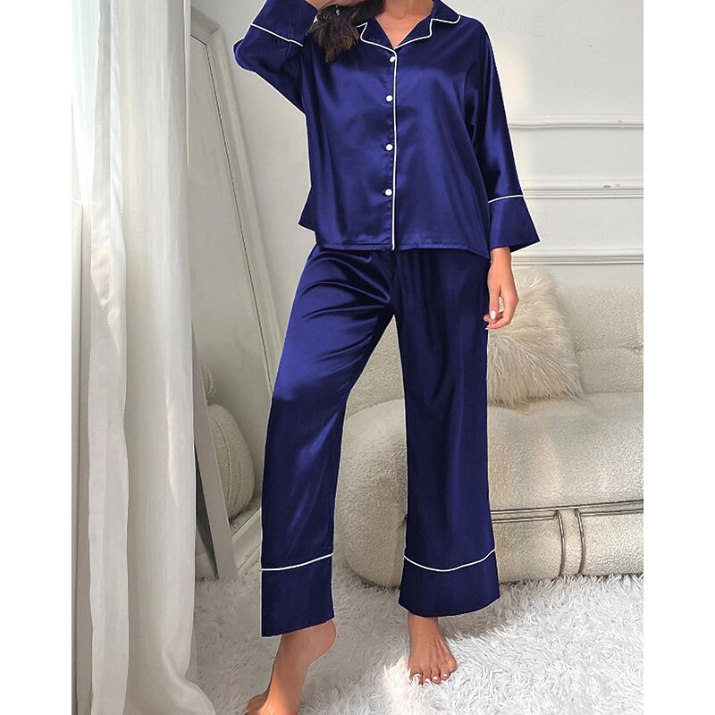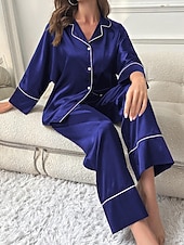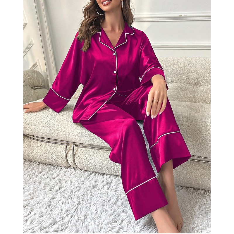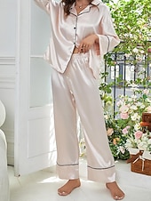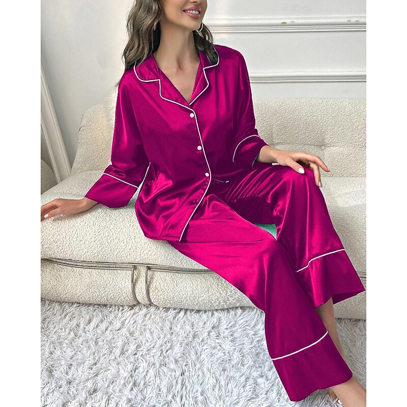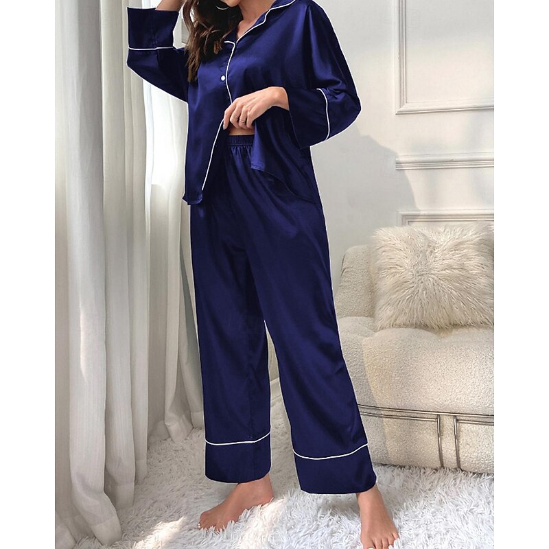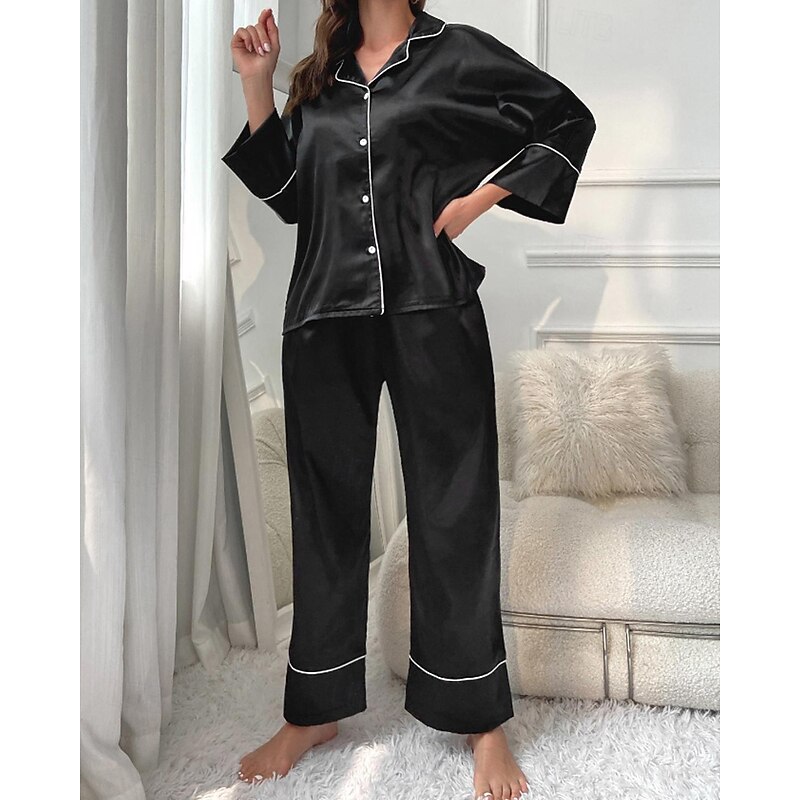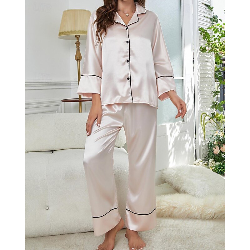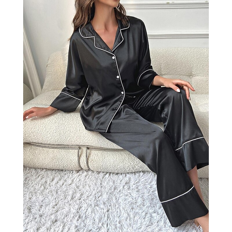 $31.99 - Women's Loungewear Pajama Set Casual Pure Color Elastic Waist Buttons Shirt Pant Vacation Home Bed Long Sleeve Lapel Black White Wine Navy Blue Beige Fall Winter Regular Fit 2025. Shop for cheap Women's Sleepwear online? Buy at lightinthebox.com on sale today!