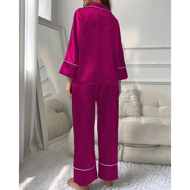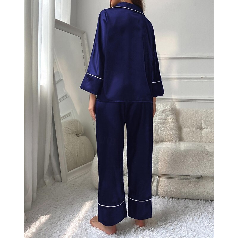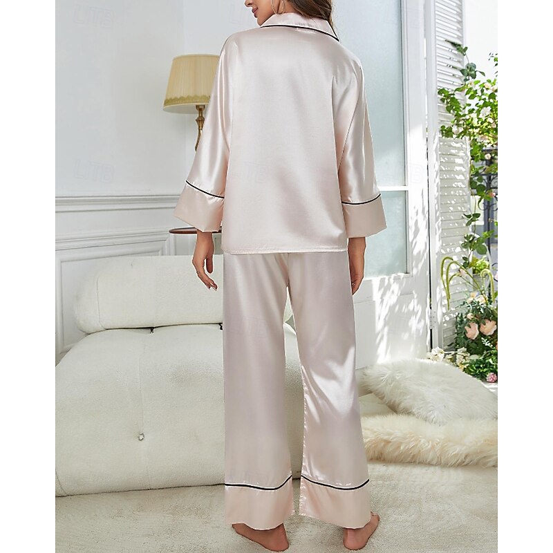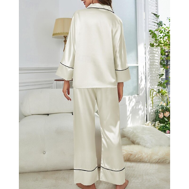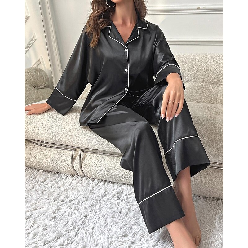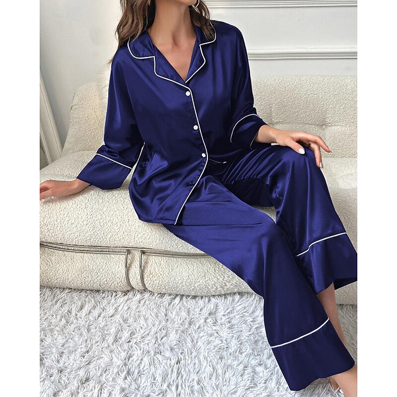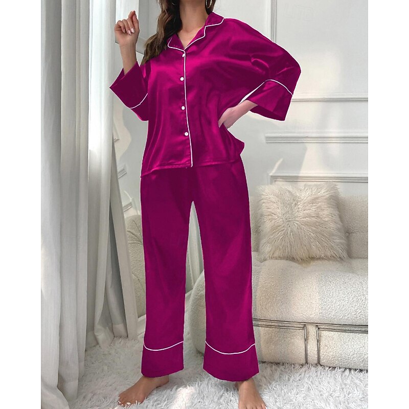 $31.99 - Women's Loungewear Pajama Set Casual Pure Color Elastic Waist Buttons Shirt Pant Vacation Home Bed Long Sleeve Lapel Black White Wine Navy Blue Beige Fall Winter Regular Fit 2025. Shop for cheap Women's Sleepwear online? Buy at lightinthebox.com on sale today!