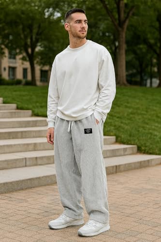 More information about Pacificozy Men's Corduroy Pants Mens Loose Ribbed Fabric Embroidered Logo Drawstring Loose Elastic Waist Pocket Trousers