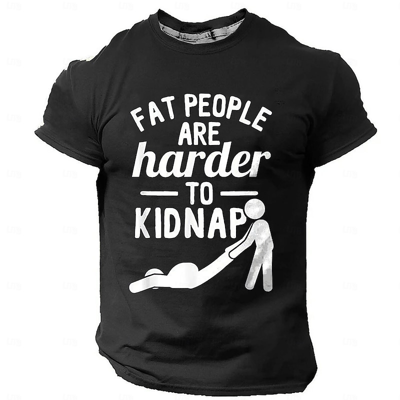 Highlights [Fabric] : Crafted from a high-quality polyester material, this men's t-shirt ensures breathability and comfort throughout the spring and summer seasons. The micro-elastic fabric provides a snug yet flexible fit, perfect for all-day wear. [Fit] : The t-shirt features a regular fit design, accommodating various body types. Its classic crew neckline and short sleeves offer a timeless look that pairs effortlessly with casual attire like jeans, shorts, or comfortable trousers. [Design Highlights] : This t-shirt stands out with its bold 3D print slogan on the front, adding a playful and modern twist to a casual staple. The vintage-inspired print infuses a sense of humor and personality into your everyday wardrobe. [Occasions] : Perfect for sports, outdoor activities, holidays, and casual outings, this t-shirt is designed for adults who appreciate a laid-back style with a humorous touch. It's suitable for both street style and retro vintage looks. [Size Range] : Available in a wide range of sizes from S to 3XL, this t-shirt offers a comfortable fit for diverse preferences and body types.