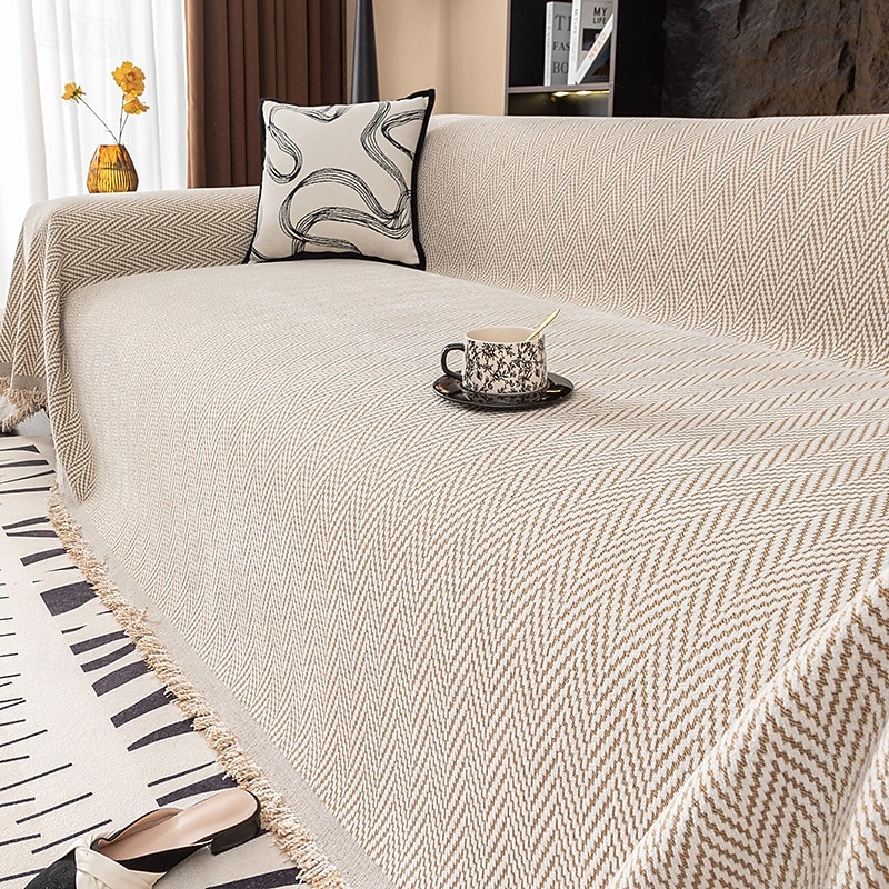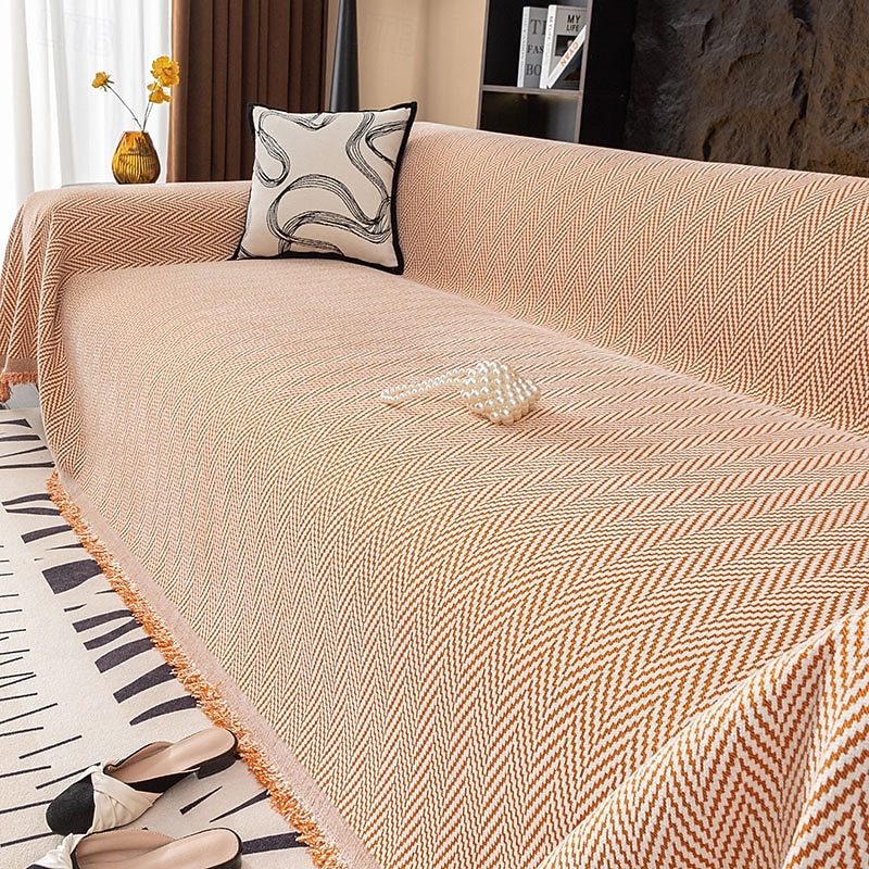 HOT ! Striped Chenille Couch Cover for Pets, Pet Friendly Full-Cover Sofa Throw Blanket, Non-Slip Scratch Resistant Decorative Sofa Protector, Modern Simple Luxury Style for Living Room