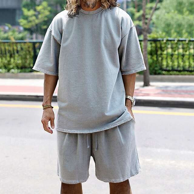 More information about Men's Tracksuit Outfit Set Shorts Crew Neck Outdoor Daily Sports Pocket Drawstring 2 Piece Plain Black White Navy Blue Polyester Activewear Classic Casual Summer