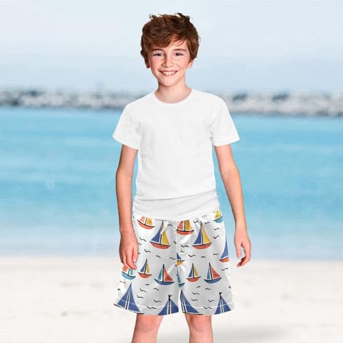 OREZI Boys Swim Trunk Shorts Colorful Boats Bathing Suit for Toddler Kids Teens