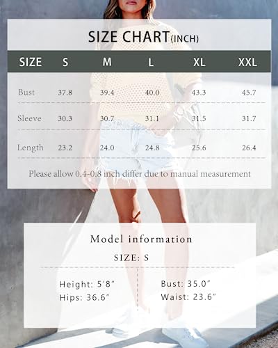 • Match: The knitted sweater shirts is perfect to pair with any clothes and shoes in your wardrobe, like skinny jeans, leggings, skirts, boot, high heels or sport shoes, for a cute & casual look in autumn, summer, and spring. The sweater is a hollow out design, you can wear a undershirt or camisole inside.