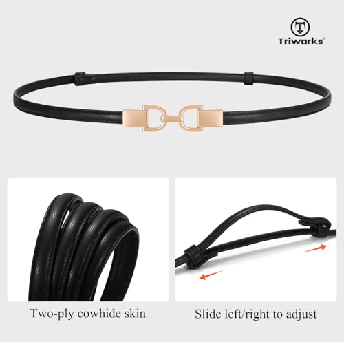 • [Gold Buckle Design]: This women's thin waist belt features an interlocking alloy buckle, which is easy to put on and take off. With a luxurious feel and a refined look, it makes you stand out effortlessly.