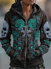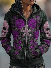 More information about Halloween Women's Zip Up Hoodies Skulls Graphic Rose Fashion Casual Long Sleeve Hooded Regular Tops Street Dailywear Casual Zipper Pocket Print Red Purple Green Spring Fall