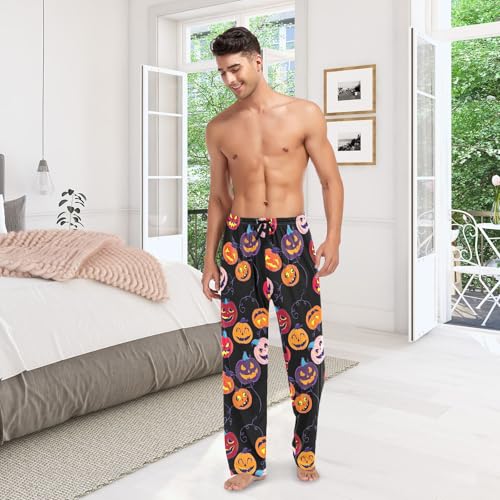 HOT ! Funny Halloween Pumpkins Black Men's Pajama Bottoms Cotton Pj Pants Comfy Pajama Pants with Pockets