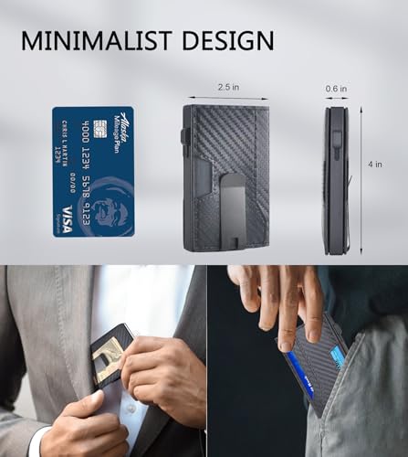 Minimalist Wallet for Men, RFID Card Holder Pop Up Wallet with Money Clip, ID Window, Leather Slot(Metal, Black CF) 6