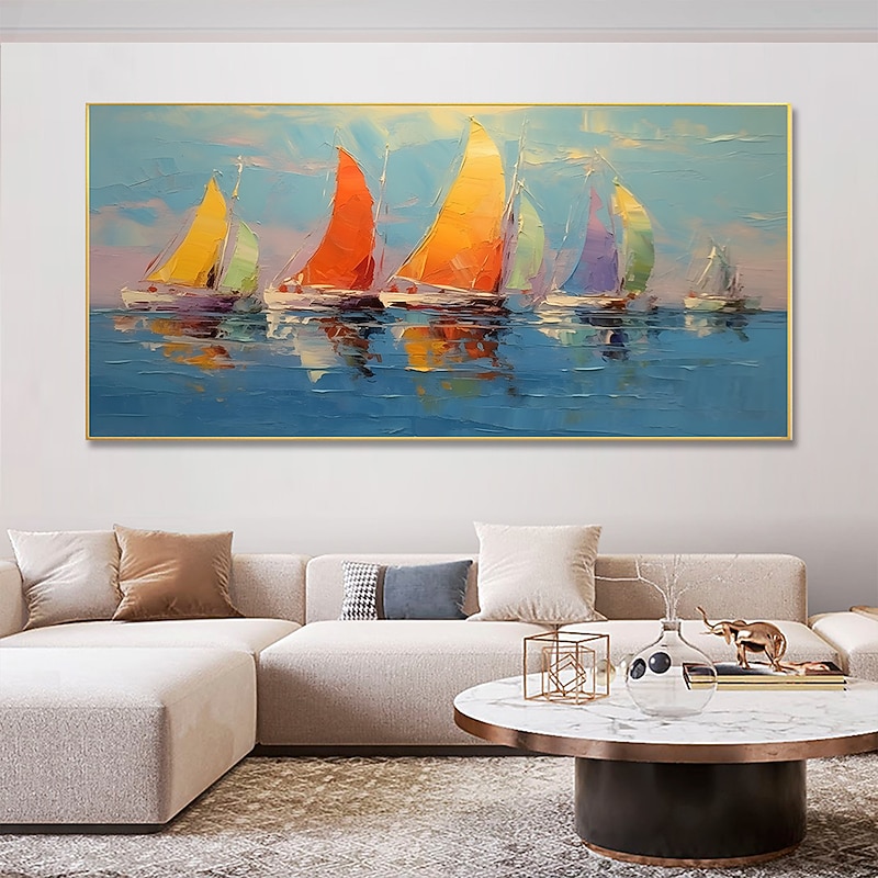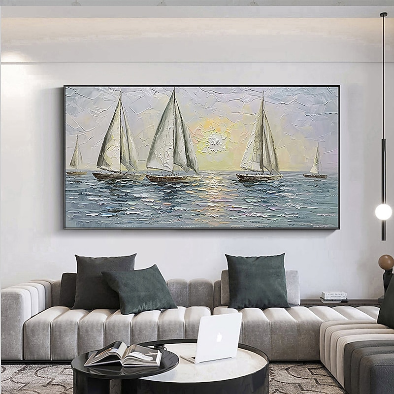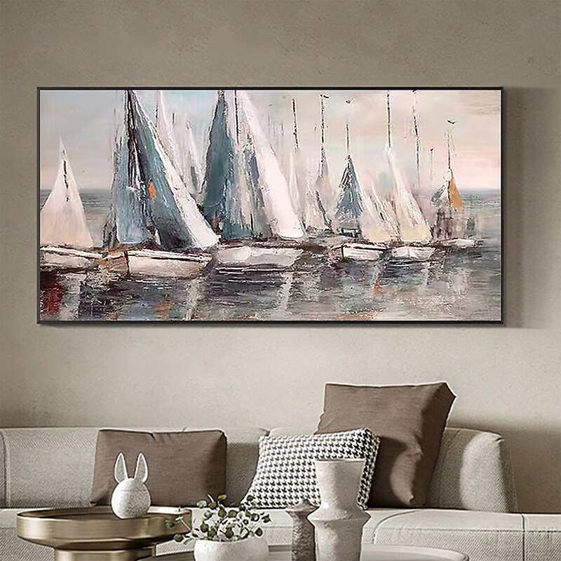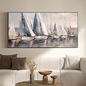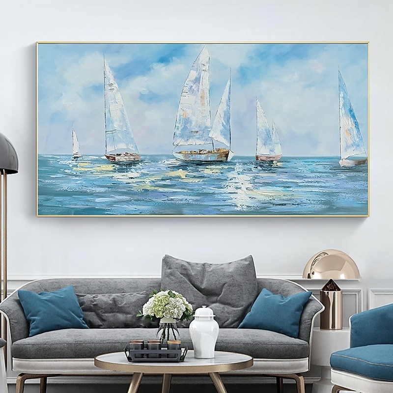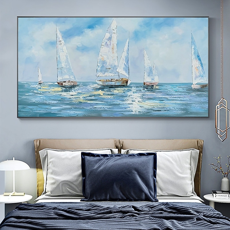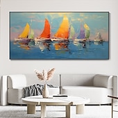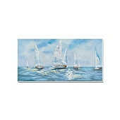 More information about Handmade Hand Painted Oil Painting Wall Art Abstract Blue Sea Boat Paintings Home Decoration Decor Rolled Canvas No Frame Unstretched