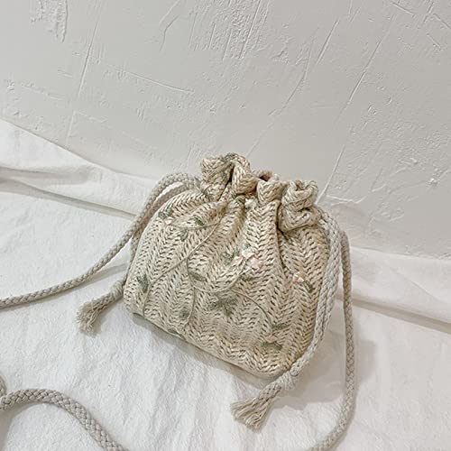 Summer Woven Messenger Bag Handbag Women Drawstring Bucket Bag Handbags Lace Straw Bag Shoulder Bag for Beach Party 5