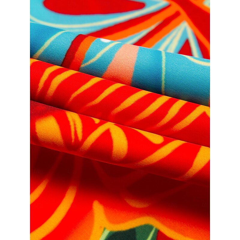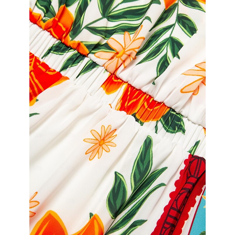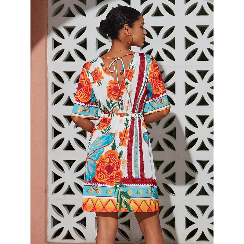 More information about Women's Mini Dress Floral Print V Neck Half Sleeve Summer Dress Orange Flower Pattern Casual Vacation Beach Outfit Elegant Style
