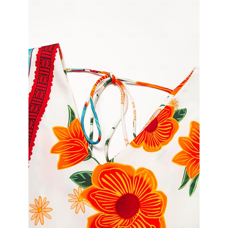 Women's Mini Dress Floral Print V Neck Half Sleeve Summer Dress Orange Flower Pattern Casual Vacation Beach Outfit Elegant Style 12