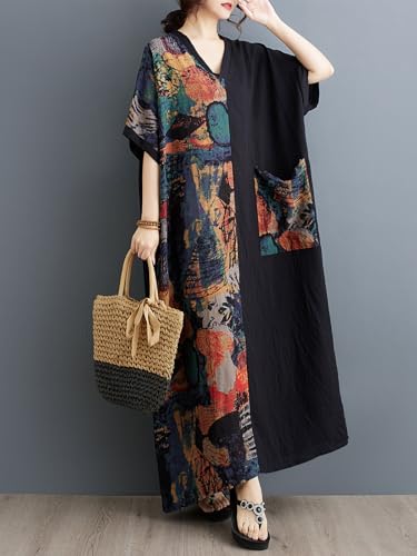 • PLUS SIZE DRESS: One size loose fitting. This womens patchwork dress length: 52.76 in. Bust: 52.76 in. Sleeve width: 9.45 in. The oversized dress with relaxed flowy silhouette ensures comfortable wear. Loose long summer dresses for women