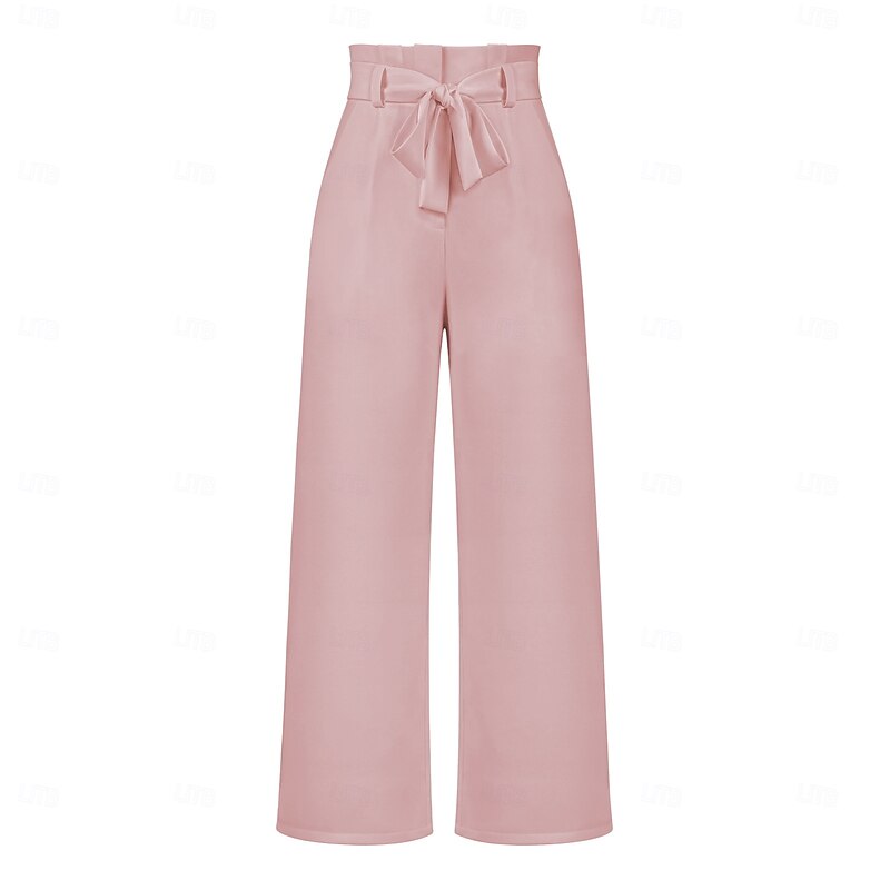 More information about Women's Wide Leg Pants Trousers Casual Full Length Natural Plain Wide Leg Comfy Breathability Casual Daily Apricot Black White Pink Spring Fall Loose Fit