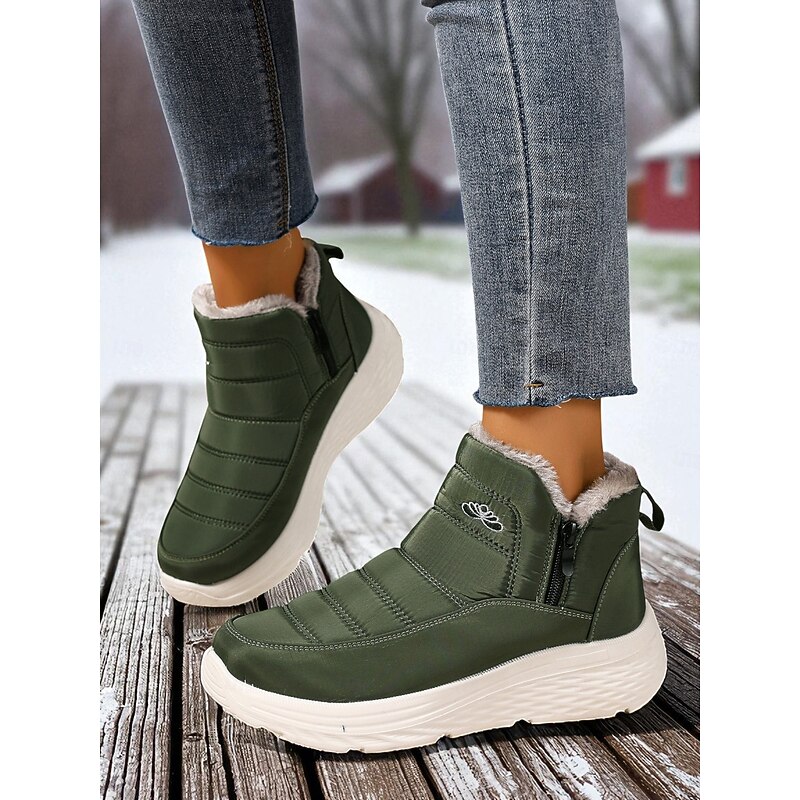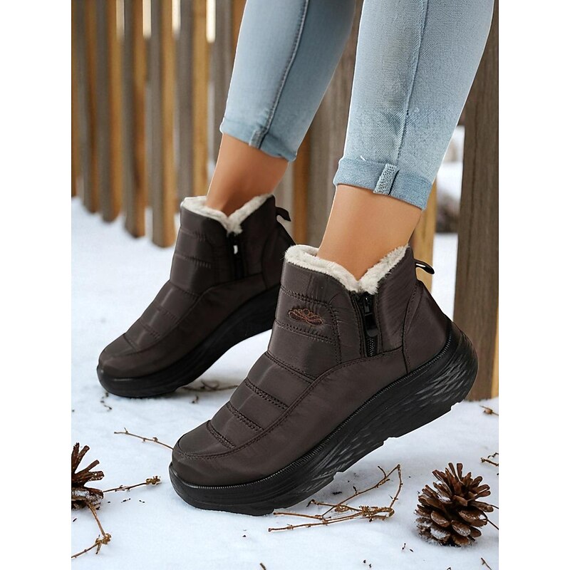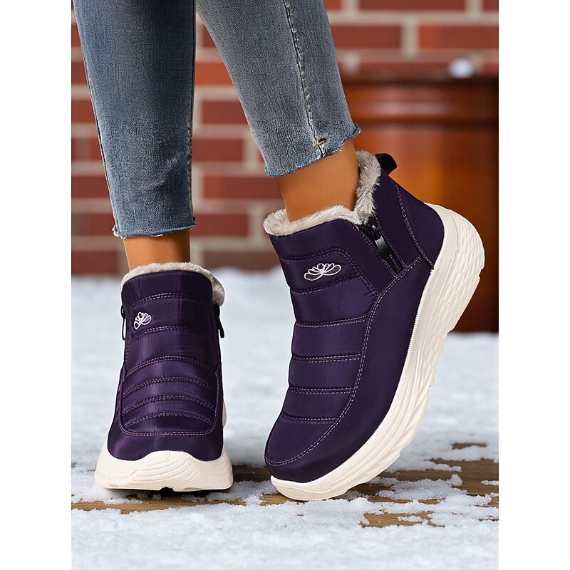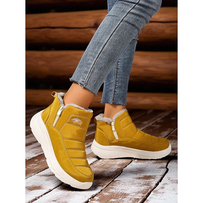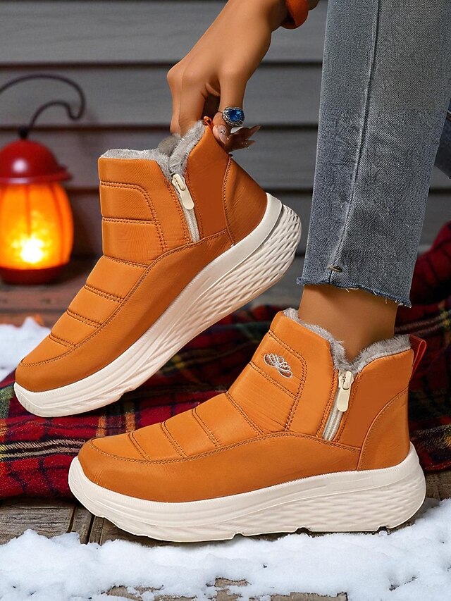 HOT ! Women's Orange Warm Ankle Snow Boots – Faux Fur Lined Waterproof Winter Shoes with Side Zipper for Halloween, Outdoor and Casual Wear