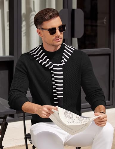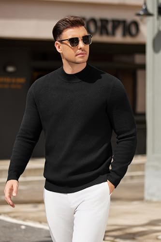 • MENS HALF NECK SWEATER: Coofandy mens elegant pullover with mock neck, long sleeve, ribbed cuffs and hem, twill texture. The mock turtleneck offering extra warmth without the tightness of a full turtleneck. Subtle knit detailing enhances this mens mock turtleneck polished look comfort for daily wear