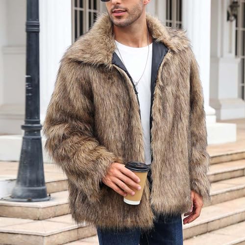 HOT ! Faux Fur Jacket for Men Fleece Winter Jacket Fuzzy Open Front Cardigan Big and Tall Warm Jacket Zip Up Coats