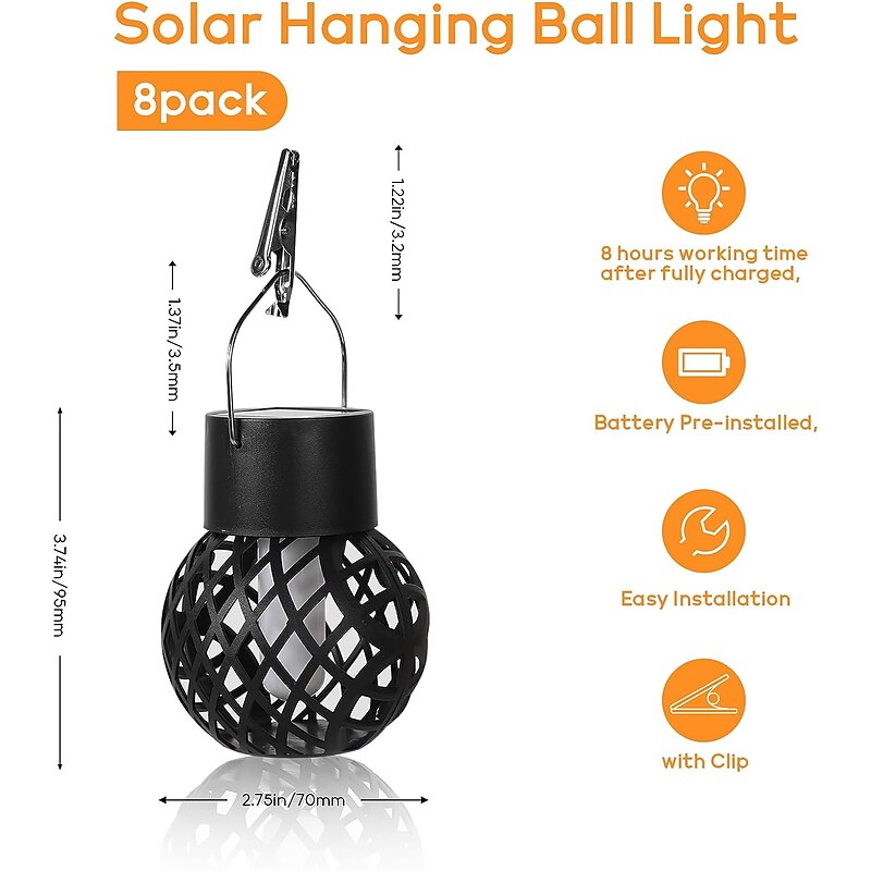 More information about Solar Flame Light Outdoor Waterproof Garden Hanging Lights Christmas Party New Year Wedding Courtyard Yard Balcony Fence Holiday Landscape Decoration Lantern 1/2/4/8pcs