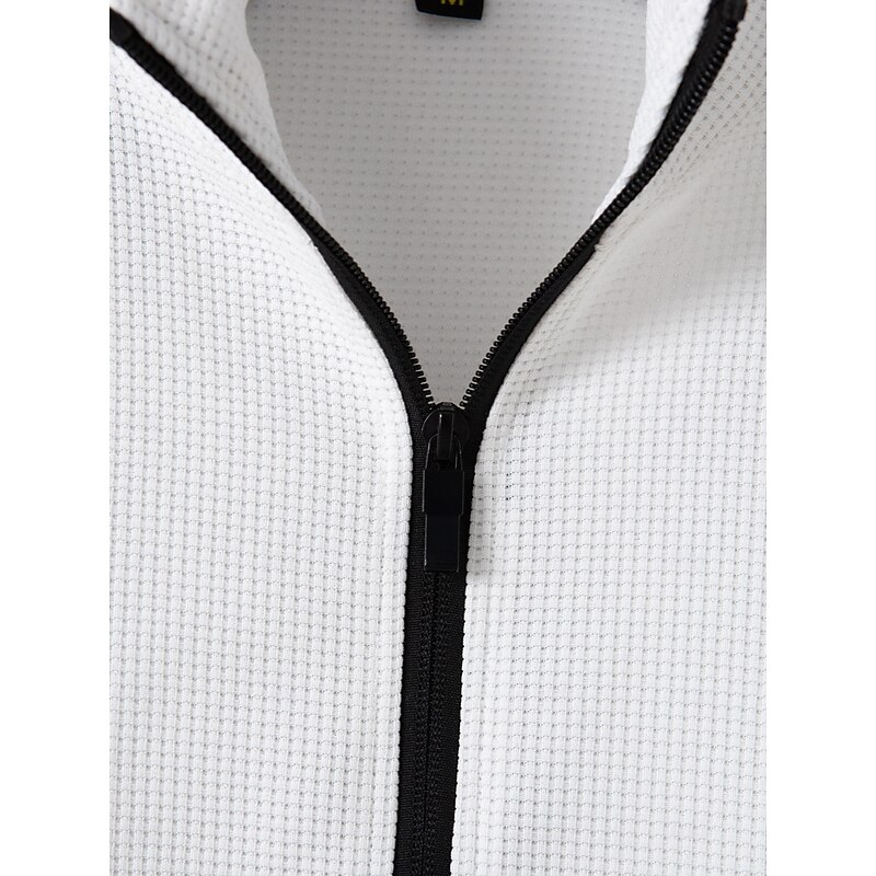 Men's Zip Up Hoodie Full Zip Hoodie Zip Hoodie Sweatshirt Zip Up Hoodies White Brown Khaki Gray Standing Collar Color Block Plain Zip Up Patchwork Sports & Outdoor Daily Holiday Streetwear Basic 6