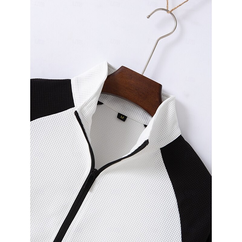 More information about Men's Zip Up Hoodie Full Zip Hoodie Zip Hoodie Sweatshirt Zip Up Hoodies White Brown Khaki Gray Standing Collar Color Block Plain Zip Up Patchwork Sports & Outdoor Daily Holiday Streetwear Basic