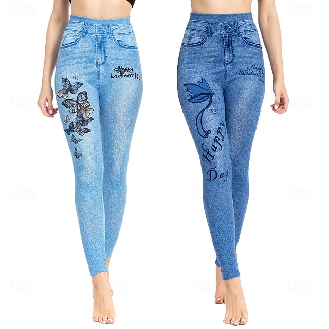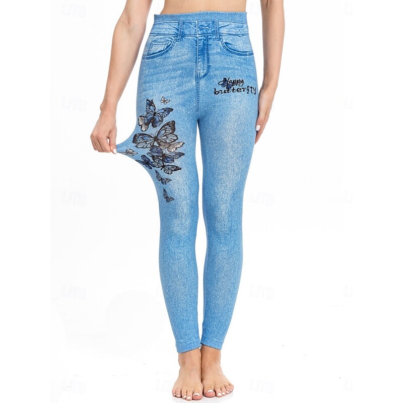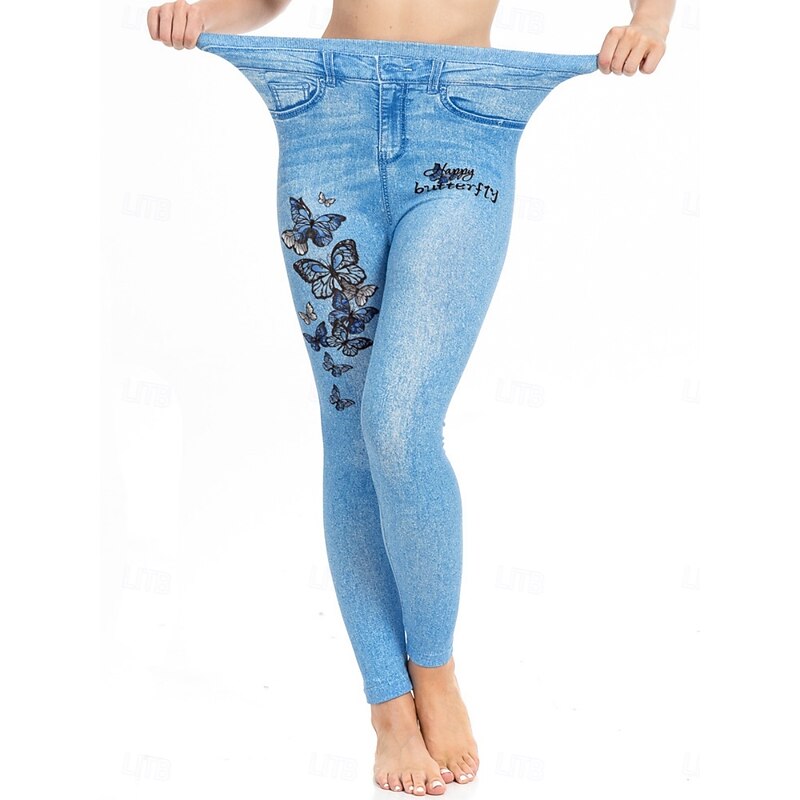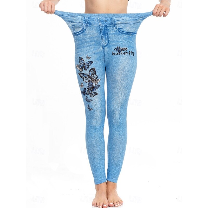 More information about Women's Leggings Trousers 3D Print Chinos Vacation Streetwear Casual Full Length High Waist Butterfly Flower Printing Comfy Soft Comfortable Stretchy Outdoor Street Blue Dark Blue Summer Skinny