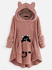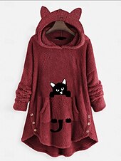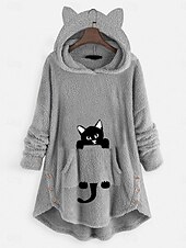 More information about Women's Pullover Hoodie Sweatshirt Cat Casual Long Sleeve Hooded Long Tops Street Dailywear Casual Buttons Print Front Pocket Pink Wine Gray Fall Winter