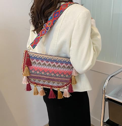 More information about Bucket Bag Niche Design Bohemian Ethnic Style Crossbody Bag Commuter Canvas Shoulder Bag For Women