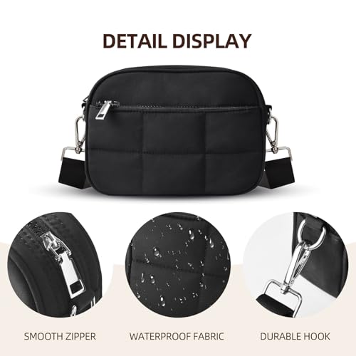 Puffer Crossbody Bag for Women with Wide Strap,Lightweight Quilted Nylon Puffy Shoulder Bag for Travel 3