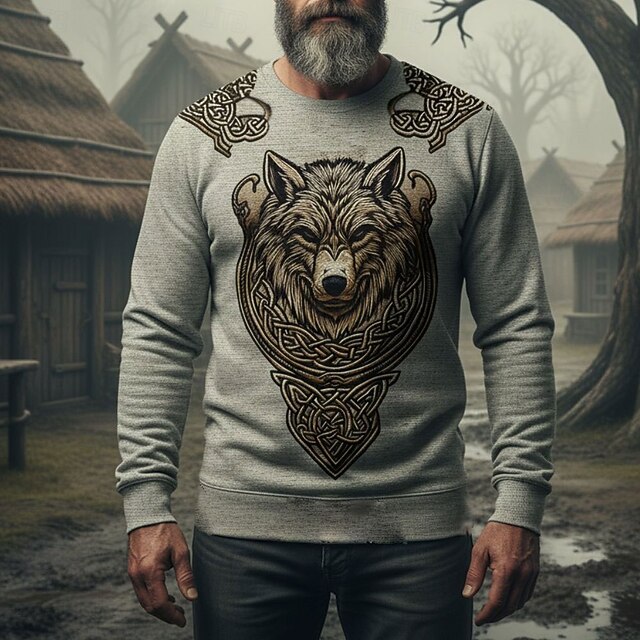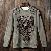 HOT ! Men's Sweatshirt Black Blue Gray Crew Neck Wolf Celtic Knot Print Casual Daily Holiday Vintage Viking Fall Winter Clothing Apparel Hoodies Sweatshirts