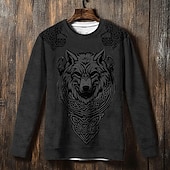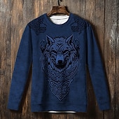 More information about Men's Sweatshirt Black Blue Gray Crew Neck Wolf Celtic Knot Print Casual Daily Holiday Vintage Viking Fall Winter Clothing Apparel Hoodies Sweatshirts